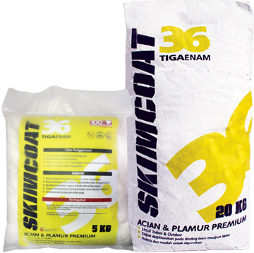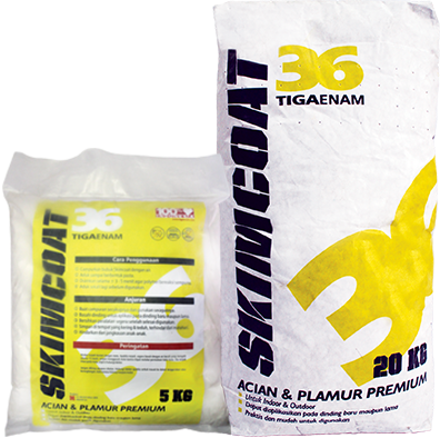 SkimCoat 36 merupakan produk instan pengganti acian & plamur tradisional, siap pakai untuk penggunaan indoor dan outdoor.